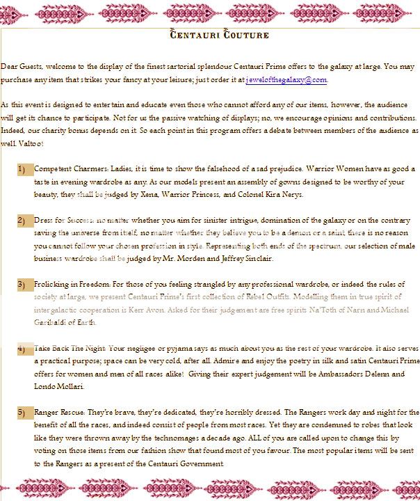 Hope posted, a week or so ago, her take on ficathon etiquette. Some valid points were made, both agreeing and disagreeing, and while I tend to agree that it's good fangirl behaviour to toss a tacit thanks to the person who wrote your ficathon assignment -- and even better behaviour to find some good things to say about it -- I can get behind the idea of, "oh, it's like an improv, you just get the elements to work with, the person who gave you the improv elements doesn't owe you anything." Still, in the interest of back-slapping, and the supportive environment of fandom, I feel like some feedback isn't out of line.